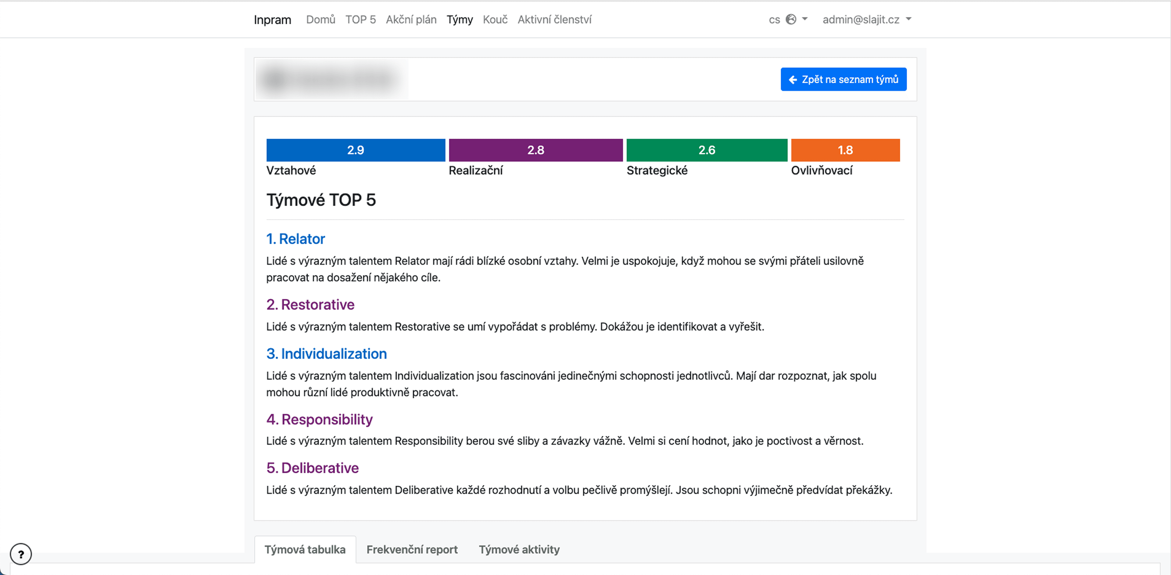 Pro společnost Inpram jsme vyvinuli pokročilý systém na míru. Klient tak může efektivně spravovat konzultace, firmy, týmy, uživatele i generovat personalizované PDF dle vyplněných testů.