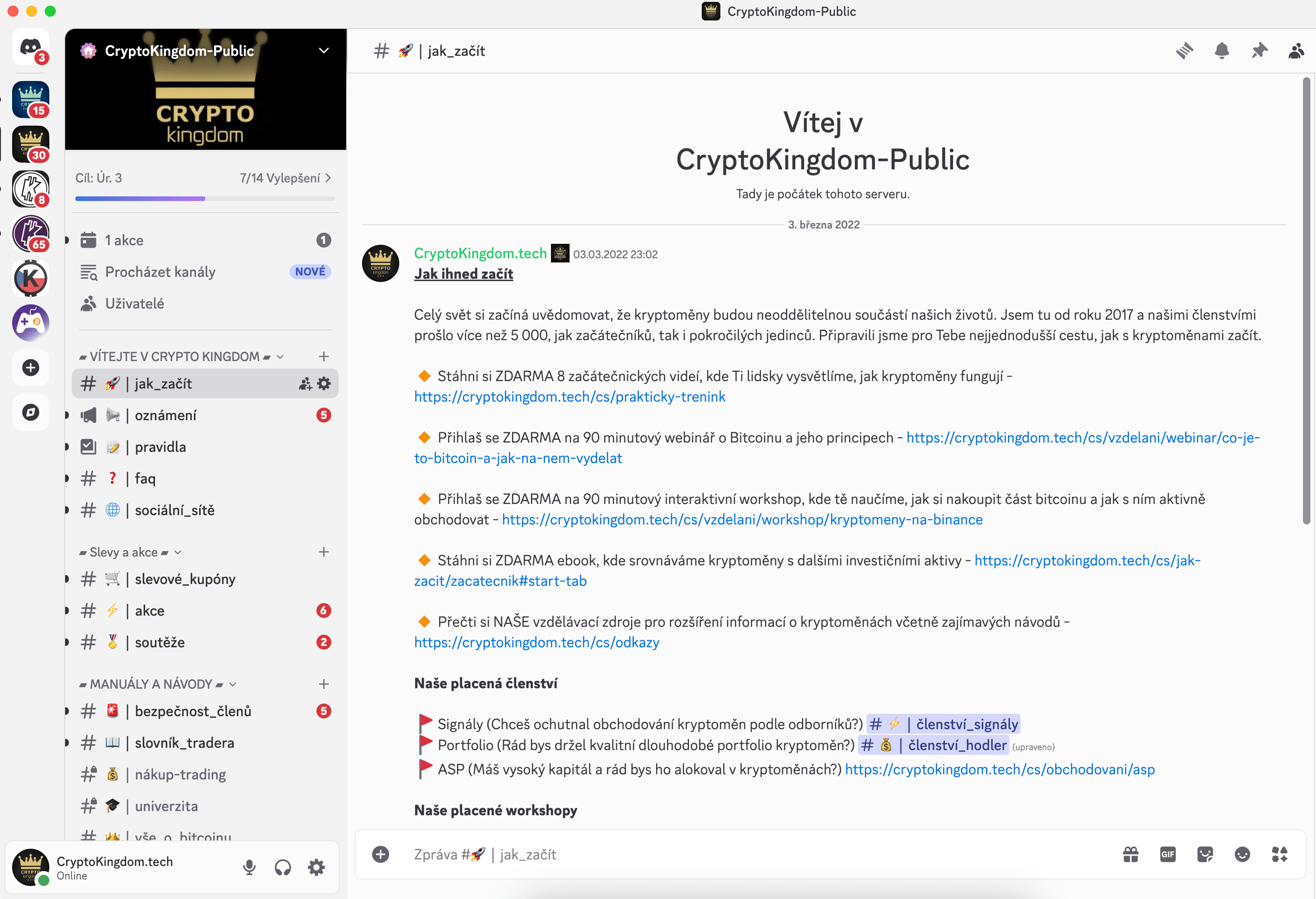 CryptoKingdom je krypto impérium, se kterým spolupracujeme od jeho úplných začátků. Web stojí na našem redakčním systému, který jsme od základu upravili tak, aby zvládal vše potřebné – správu uživatelů, zakoupení a správu kurzů, přístup k datovým nástrojům pro obchodování i napojení na Discord. V rámci vývoje jsme vytvořili i původní grafiku, aktuálně ale probíhá redesign s novými podklady dodanými klientem. Specifikem tohoto projektu je také přímé napojení na Discord komunitu, kde systém podle typu členství automaticky přiřazuje role – díky čemuž mají uživatelé přístup k privátním informacím a signálům. Klient měl jako obvykle přístup k DEMO verzi pro připomínkování ještě před nasazením do ostrého provozu.