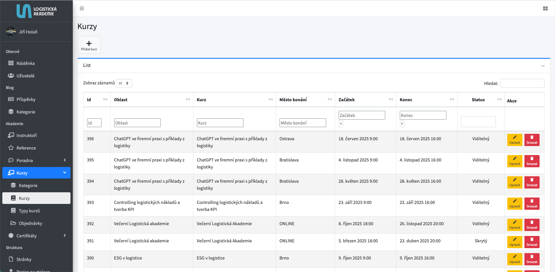 Web pro Logistickou akademii jsme vytvořili včetně designu na míru. Systém umožňuje správu uživatelů, objednávek i online prodej kurzů a certifikací.