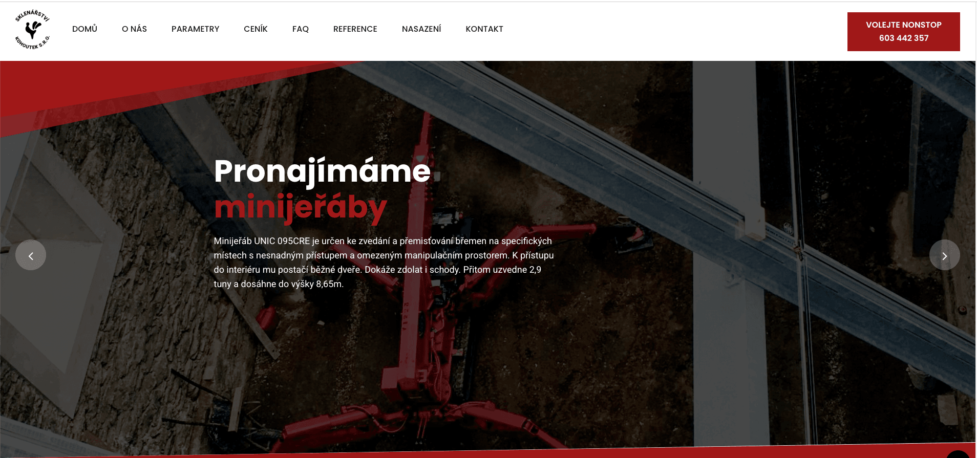 Regionálně zaměřený web pro služby minijeřábů v Moravskoslezském kraji. Vznikl jako první z dvojice vizuálně sladěných WordPress webů.