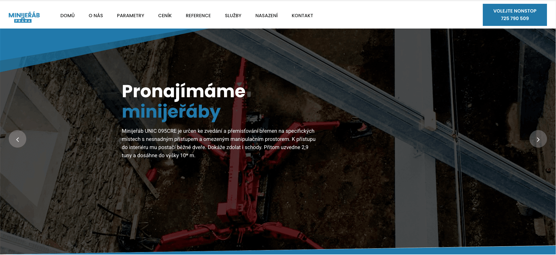 Web zaměřený na prezentaci služeb minijeřábů v oblasti Prahy. Postaveno na WordPressu s důrazem na jednoduchost, přehlednost a technické doladění.