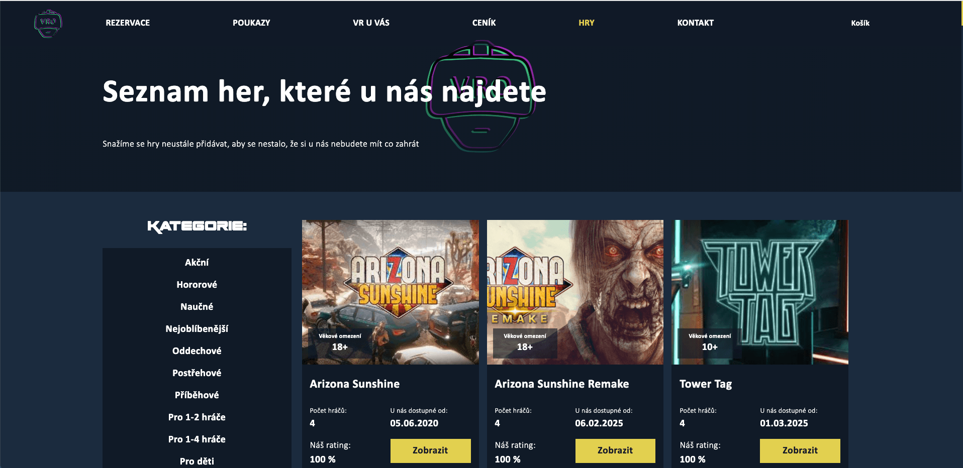 - Web pro VR hernu